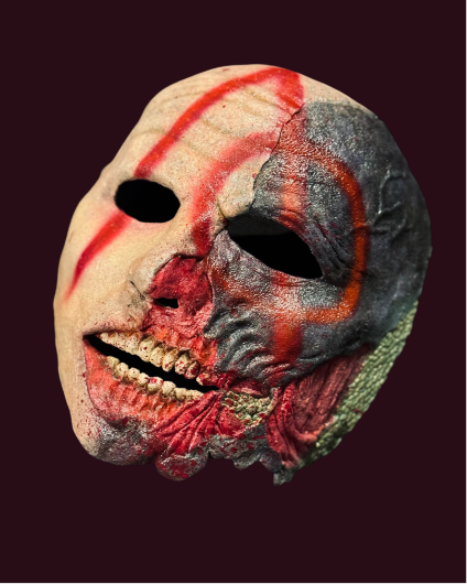 Custom prosthetics crafted with encapsulated silicone and foam latex for lifelike transformations.